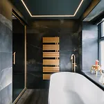 Οι παροχές μπάνιου επίσης περιλαμβάνουν ξεχωριστή τουαλέτα, ντους και πλυντήριο. Επίσης, για την άνεση των επισκεπτών παρέχονται στεγνωτήρας μαλλιών, μπουρνούζια και πετσέτες